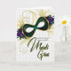 Carte Mardi Gras Violet, or et masque vert