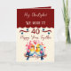 Célébrez 40 années heureuses avec cette douce carte d'anniversaire de mariage rubis pour votre mari extraordinaire! Doté de deux adorables tourtereaux juché côte à côte, ce design charmant capture la joie d’un amour qui a résisté à l’épreuve du temps. Avec le message sincère "40 années heureuses ensemble" sur le front, c’est parfait pour partager un sourire et un souvenir sur votre journée spéciale. Que vous vous souviez du passé ou que vous rêviez du futur, cette mignonne carte d'anniversaire est une belle façon de dire "J'ai tellement de chance de vous avoir comme mari" après toutes ces années. Un parfait souvenir pour votre 40e anniversaire ! Maroon / Bleu