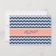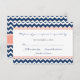 Cartes de mariage RSVP en bleu marine foncé élégant et contemporain, pêche rose orange et blanc rétro et chevrons décontractés zigzags motif. Personnalisable avec les détails de votre mariage, disponible dans de nombreux produits mariages correspondants.