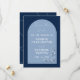 Annoncez votre journée spéciale avec cette carte de date moderne et élégante, avec une disposition unique en forme d'arc. La palette sophistiquée de couleurs bleues bicolores, marine profonde associée à une ardoise molle, ajoute une élégance intemporelle, tandis que les délicates illustrations florales blanches apportent une touche romantique. La typographie épurée et le design minimaliste en font un lieu idéal pour les mariages contemporains. Entièrement personnalisable avec vos noms, date et détails de l'événement. Le dos de la carte présente un style moderne avec un motif en ligne bleu clair et audacieux.