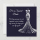 Cette carte de mariage plat est affichée avec un message pour la mariée de joie et d'amour le jour de son mariage. Montré avec un arrière - plan bleu marine. Customisez de modifier cette carte ou d'acheter comme indiqué. Image sous licence