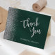Cette élégante carte de remerciements mariage moderne présente une bordure de fausse parties scintillant argentée sur un arrière - plan vert émeraude. Le texte personnalisable combine les mots "Merci" en écriture manuscrite gris argent et les noms de la mariée et du marié en sans serif.