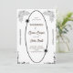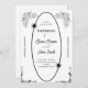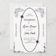 Cette carte à faire-part de mariage présente un design classique noir et blanc avec des bordures florales élégantes dans chaque coin. L'espace central est mis en valeur par une bordure en forme ovale et élégante, apportant une touche de sophistication à l'ensemble. Cette invitation est parfaite pour un thème mariage traditionnel et intemporel.