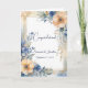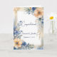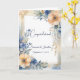Célébrez une union spéciale avec cette carte de félicitations mariage exquise, personnalisée avec les noms de la mariée et du marié et la date du mariage. Le cadre floral à l'aquarelle époustouflante présente des tons pêche doux, bleu et or, avec des arrangements floraux complexes dans les coins supérieur droit et inférieur gauche. De grandes fleurs de pêche et de bleu, de délicats feuilles et des accents botaniques dorés créent un design gracieux et intemporel. L'arrière - plan s'évanouit dans un mélange rêveur de lavages d'aquarelle en bleu et pêche, tandis qu'un cadre géométrique doré et fin ajoute du raffinement. Cette carte magnifiquement express aime et félicitations pour leur journée spéciale.