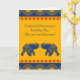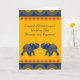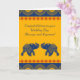 Ces cartes de félicitations de mariage offrent une vision moderne des cérémonies et réceptions de mariage indiennes traditionnelles avec leur palette de couleurs audacieuses de jaune doré, rouge et bleu royal. Les cartes sont accentuées par un motif géométrique et présentent des illustrations d'éléphants en bleu royal et sont prêtes à être personnalisées avec votre propre message sur le devant et à l'intérieur.