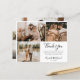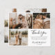 Budget, Moderne, Élégant, Mariage Lettré À La Main (3) Trois Photo Collage Carte de remerciements. Élégant modèle mariage avec trois photos sur le devant et une photo sur le dos. Avec le texte "Merci" dans une police de script de typographie tourbillonnant lettrée à la main avec des swashes en couleur noire sur arrière - plan blanc. Petit coeur entre les noms. Ajoutez votre nom personnalisé et un message de remerciement. Si vous préférez écrire votre note à la main, supprimez simplement l'exemple de texte pour gagner de l'espace.