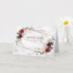 Moderne, élégant et tendance, ce carte de remerciements photo mariage présente une géométrie en faux cuivre agrémentée d'une aquarelle de verdure d'eucalyptus et d'arrangements floraux bordeaux et roses, sur une texture en faux marbre blanc, avec du texte dans une couleur bordeaux assortie. Votre message de remerciement est personnalisé à l'intérieur, et le haut du rabat intérieur vous permet d'ajouter votre photo mariage préférée. Fait partie d'un ensemble de mariages correspondant. Copyright Invitations élégants. Tous droits réservés.