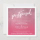 Cette conception comporte une police de script manuscrite moderne utilisée pour créer un graphique représentant le mot "reporté", grand et gras. Une subtile couche d'aquarelle a été placée en haut, ajoutant de la texture et créant un dégradé, un effet d'ombre avec votre couleur arrière - plan. Pour ajouter un effet audacieux, j'ai placé une épaisse bordure blanche autour des bords de l'avant de la carte. Utilisez les champs modèles pour ajouter vos détails personnels et faire de ce design unique et moderne votre propre. L'arrière - plan peut être changé en n'importe quelle couleur. Veuillez communiquer avec toute demande spéciale ou customiser de l'aide. // 100 //