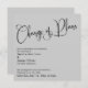 Si vous êtes en position de devoir informer vos invités mariages que vous avez dû changer de date importante, voici une option simple et élégante. Dans cet article, la police de script moderne et élaborée a été utilisée pour créer un joli graphique représentant les mots "Changement de plan". Utilisez les champs modèles pour ajouter vos données personnelles et faire de cette conception votre propre. Ce morceau peut être utilisé pour les retards ou les annulations de mariage, au besoin... il suffit de changer le texte à tout message que vous préférez. L'arrière - plan solide peut être changé à n'importe quelle couleur que vous préférez. Toutes les couches ont été ajoutées séparément et laissées déverrouillées pour vous offrir la plus grande quantité de contrôle de conception. Veuillez communiquer avec toute demande spéciale ou customiser de l'aide. // 32 //