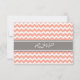 Cartes de mariage RSVP en gris fusain élégant et contemporain, motif chevron rose pêche et blanc moderne zigzags. Personnalisable avec les détails de votre mariage, disponible dans de nombreux produits mariages correspondants.