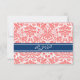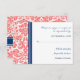 Carte Mariage RSVP Coral Blue Damask
