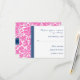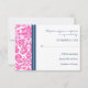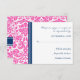 Cartes de mariage RSVP dans élégant et contemporain fuchsia rose chaud, bleu marine foncé, blanc classique et chic motif vintage damassé floral et classique. Personnalisable avec les détails de votre mariage, disponible dans de nombreux produits mariages correspondants.