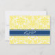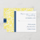Cartes de mariage RSVP dans élégant et contemporain citron clair jaune, bleu marine foncé, blanc classique et chic motif vintage damassé floral classique. Personnalisable avec les détails de votre mariage, disponible dans de nombreux produits mariages correspondants.
