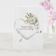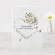 Coeur de ruban satin blanc mariage avec bouquet de lierre et anneaux de coeur d'or pour les nouvelles félicitations. Le texte à l'intérieur du coeur peut être modifié.