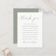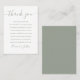 Une célébration de mariage élégante merci jeu de cartes de réception. Personnalisé avec votre message de remerciement spécial ensemble dans une typographie verte à la sauge stylisée. Vous pouvez customiser l'arrière - plan à votre couleur de thème mariage préférée. Un gardien spécial vous remercie pour vos invités. Conçu par Thisisnotme©