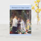 L'illustration vintage d'une cérémonie de mariage montre une scène à l'intérieur d'une église ou d'une cathédrale avec un marié partageant ses voeux et échangeant des anneaux. Le recto de la carte dit, "Bénédiction au Joyeux Couple." Le message à l'intérieur de la carte est : "Que votre engagement s'approfondisse, que votre joie augmente et que votre amour devienne plus fort à partir de ce jour."