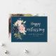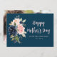 Un design carte photo floral aquarelle avec des fleurs bleu marine et rose. Le texte et les couleurs peuvent être personnalisés.