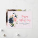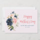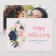 Un design carte photo floral aquarelle avec fleurs bleu marine et rose et script noir. Le texte et les couleurs peuvent être personnalisés.