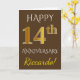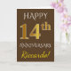 Carte Marron, Or Faux 14e Anniversaire de Mariage + Nom