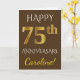 Carte Marron, Or Faux 75e Anniversaire de Mariage + Nom
