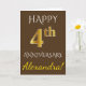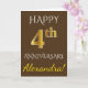 Cette carte de vœux simple et personnalisée pour un anniversaire de mariage comporte le message "Joyeux 4ème anniversaire de mariage", avec le "4ème" ayant une apparence dorée factice. Le recto comporte également un nom personnalisé et un fond de couleur marron. L'intérieur contient un message personnalisé d'anniversaire de mariage. Elle pourrait être offerte à un mari ou une femme pour célébrer le quatrième anniversaire de mariage du couple.