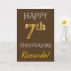 Cette carte de voeux d'anniversaire de mariage simple et personnalisée comporte le message "Joyeux 7e ANNIVERSAIRE DE MARIAGE", avec le "7e" ayant l'apparence de l'or imitation. La couverture comporte également un nom personnalisé et un fond de couleur marron. L'intérieur comporte un message de voeux d'anniversaire de mariage personnalisé. Cela pourrait être offert à un mari ou une femme pour célébrer le septième anniversaire de mariage du couple. [~Z0000090]