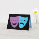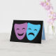 Cette illustration dramatique présente un masque comique violet riant avec un sourire et un masque tragique bleu et triste pleurant avec un sourcil ! Ce design de masques de théâtre classique est le cadeau parfait pour un acteur ou une actrice ou toute personne qui aime le théâtre, Shakespeare ou se produire sur scène!