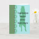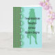 Carte de félicitations pour votre fille qui a reçu son Master. Le design a une silhouette de fille dans un casquette et une robe et est fait pour ressembler à un carnet. Les couleurs sont vertes et turquoise clair. Une carte spéciale pour une personne spéciale.