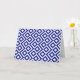 Ce motif géométrique bleu et blanc audacieux est une conception ornementale originale. Le blanc serpente angle autour des diamants bleu-foncé contenant les diamants blancs. Les zigzags bleus vibrants fournissent la séparation subtile entre les chemins d'enroulement.