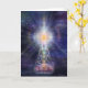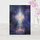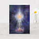 Méditeur transparent assis sur un lit de lotus dans l'espace avec chakras coloré et lumière radiante au-dessus. Par Daniel B. Holeman.