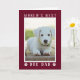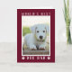 Faites-lui savoir qu'il est le "Meilleur Père Chien du Monde" avec cette carte d'anniversaire personnalisée. Personnalisez cette carte mignonne avec la photo de votre chien de chiot précieux dans le cadre mat blanc et gris et les empreintes de pattes sur un arrière - plan bordeaux. L'intérieur dit : "Joyeux anniversaire ! (mon plat est vide)", personnalisez la fermeture avec votre nom.