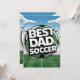 Meilleur papa graffiti de football Carte de vacances. Le design a des graffitis manuscrits noirs modernes gouttant avec le ballon de football dans le stade. Grand cadeau pour un père actif et sportif qui aime le football et le rugby. vous pouvez ajouter votre nom de père c'est une idée parfaite pour faire un cadeau personnalisé unique pour votre père, grand-père, mari. Que pensez-vous de cette carte de vacances papa personnalisée ?