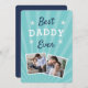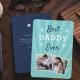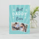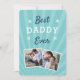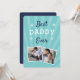 Célébrez un père bien-aimé cette Fête des pères avec ce design carte photo cool qui présente deux photos préférées avec l'expression "meilleur papa jamais" en lettres blanches et bleues sur un arrière - plan aqua. Ajoutez un message préimprimé personnalisé au verso.