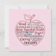 La tasse de professeur "pomme rouge" pour l'appréciation des enseignants comporte une typographie colorée qui lit "Meilleur professeur jamais !" et cite les qualités d'un grand enseignant, notamment aimable, perspicace, motivant, calme, engagé, inspirant, compétent, joyeux, discipliné, humble, patient, passionné, curieux, attentionné, perspicace et génial. Que ce soit pour la Journée ou la Semaine nationale d'appréciation des enseignants, son anniversaire ou tout autre jour spécial pour montrer votre appréciation, la tasse à café fait un cadeau spécial pour l'enseignant de votre vie ! Les couleurs de fond rose et bleue sont personnalisables si vous souhaitez les modifier à votre couleur ou à celle préférée de l'enseignant.