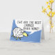 Illustration amusante d'un mouton sur une carte avec le message sur le devant : "Ewe are the best Cashier baaa none!" Un jeu de mots sur le blanchiment d'un mouton. Une excellente idée de carte pour louer un professionnel. Personnalisez l'intérieur avec votre propre message.