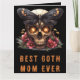 Meilleure Goth Maman Ever Crâne Moth Orange Carte de Fête des Mères - Cette carte gothique personnalisée de la Fête des Mères comporte un crâne avec des fleurs moody, rose et des yeux jaunes oranges brillants sur un arrière - plan noir éffrayant. "Best Goth Mom Ever" est écrit dans une police gothique en détresse. A l'intérieur, personnalisez en ajoutant votre propre photo et message. Parfait pour les mères alternatives, les mamans qui aiment tout éffrayant, Halloween, et l'horreur, et les mères goth qui aiment les choses plus sombres dans la vie.