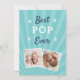 Célébrez une Pop bien-aimée cette Fête des pères avec ce design carte photo cool qui présente deux photos préférées de ses petits-enfants avec l'expression "meilleur Pop jamais" en lettres blanches et bleues sur un arrière - plan aqua. Ajoutez un message préimprimé personnalisé au verso.
