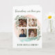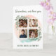 Célébrez Mémé avec cette belle carte de vœux personnalisée avec un collage de photos personnalisé, un délicat motif d'eucalyptus et des accents d'aquarelle douce, encadrant quatre photos de famille. Le message d'amour 'Mémé, nous t'aimons' en fait un cadeau inoubliable pour les anniversaires, les fêtes ou juste comme ça. Personnalisez avec vos photos et noms préférés pour une carte vraiment unique.