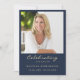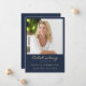 Cette simple carte commémorative peut être donnée comme souvenir lors d'une célébration de la vie ou d'un service funéraire ou envoyée comme hommage spécial à ceux qui n'ont pas pu y assister. Design dispose d'un modèle photo avec une élégante typographie de script or sur un arrière - plan bleu classique. Personnalisez cette carte avec une photo de votre défunt, nom, date et votre choix de prière ou poème au dos de la carte. Facile à customiser.