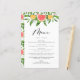 Ajoutez cette carte de carte de pamplemousse lumineuse et festive à votre paysage de table d'évènement. Il est doté de guirlandes aquarelles ou pamplemousses, d'oranges et de verdure. Personnalisez en ajoutant des noms et des détails de menu. Cette carte de menu à thème agrumes est parfaite pour les mariages d'été et d'autres événements.