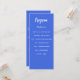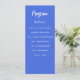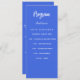 Programme et carte menu. Personnalisez et ajoutez votre nom, votre date et le menu. Arrière - plan bleu royal, texte blanc.