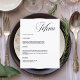 Un arrière - plan blanc. Personnalisez et ajoutez vos noms, votre date et le menu. Texte noir. 1 feuille = 1 menu imprimé bord à bord.