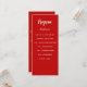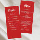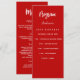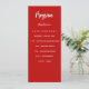 Programme et carte menu. Personnalisez et ajoutez votre nom, votre date et le menu. Arrière - plan rouge, texte blanc.