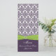 Cette carte de menu mariage damassé vert citron et violet lapis pourpre correspond au faire-part de mariage ci-dessous. Si vous avez besoin d'aide, envoyez un courriel à niteowlstudio@gmail.com.