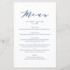Carte menu Mariage bleu minimaliste