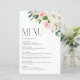 Ajoutez un accent floral à votre paysage de table d'évènements avec cette carte de menu personnalisable.Il dispose d'un bouquet d'aquarelle de roses, roses et blancs, et pivoines. Personnalisez en ajoutant vos détails. Cette carte à la carte fleurie est idéale pour les mariages printaniers, les baby showers, les douches nuptiales, les anniversaires et plus encore.
