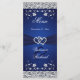 Cette élégante carte de menu floral bleu marine et gris argenté avec un ruban IMPRIMÉ et une paire de diamants et de parties scintillant IMPRIMÉS a joint le broche de coeurs avec des fleurs gris argenté, des vignes et des feuilles et une bordure en feuille d'argent FAUX correspond au faire-part de mariage ci-dessous. Il est conçu sur une carte à rack avec un avant brillant et un retour mat. Si vous désirez une carte de menu sur papier d'invitation pour correspondre à vos invitations, ou si vous avez des demandes d'articles supplémentaires ou de modifications, veuillez envoyer un courriel à niteowlstudio@gmail.com avec votre demande.