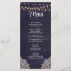 Ajoutez une touche de charme rustique à votre réception de mariage avec notre Rustic Elegance Menu Card. Ce menu magnifiquement conçu comprend un arrière - plan en bois rustique bleu nuit orné de délicats lampes à cordes et un motif en dentelle au sommet. La section menu personnalisable vous permet de la personnaliser avec votre propre sélection de plats et de boissons. Au verso de la carte, vous trouverez un motif en dentelle de mandala captivant, minutieusement confectionné sur l'arrière - plan en bois. Cela ajoute un élément supplémentaire d'élégance et d'unicité à votre affichage de menu. L'association du bois rustique, des lampes à cordes et de la dentelle crée un mélange harmonieux d'esthétique naturelle et délicate, parfait pour un mariage à thème rustique ou boho. Que vous planifiez un mariage extérieur romantique ou une fête intérieure intimiste, notre carte Rustic Elegance est un complément élégant à votre décor de réception. Non seulement il offre à ses clients un aperçu des plaisirs culinaires qui les attendent, mais il renforce également l'ambiance générale de votre lieu mariage. Customisez la carte de menu pour qu'elle corresponde à vos couleurs, polices et style mariages, ce qui en fait un souvenir personnalisé pour vos invités. C'est une façon merveilleuse de mettre en valeur votre attention aux détails et de créer une expérience culinaire mémorable. Profitez de l'élégance rustique de votre mariage avec notre carte de menu Rustic Elegance et laissez-la compléter votre décor et thème mariages.