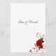 Ce modèle de carte de menu est affiché sur le papier de base en blanc avec une belle rose rouge imprimé design. Script et texte standard en noir. Customisez les noms et les éléments du menu à votre place en cliquant sur le bouton personnaliser, recherchez à droite et trouvez les cases appropriées pour modifier vos informations. Je vous souhaite de bons voeux pour votre jour de mariage.