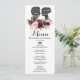 Cette charmante carte de menu mariage présente une jolie aquarelle peinte à la main, florale en bordeaux, marine et rousse élégamment combinée aux silhouettes vintages d'Elizabeth Bennet et de Mr Darcy, deux des personnages les plus aimés et emblématiques de la littérature anglaise, du roman romantique "Pride and Prejudice" écrit par Jane Austen. Chaque silhouette porte des citations romantiques du roman, écrites en lettres blanches. La couleur arrière - plan de l'invitation est définie sur blanc, mais n'hésitez pas à choisir une nouvelle couleur de remplissage afin de l'adapter à votre thème mariage. Utilisez les champs de texte pour ajouter vos détails et cliquez sur le bouton "Customiser plus" pour réorganiser les éléments si nécessaire.
